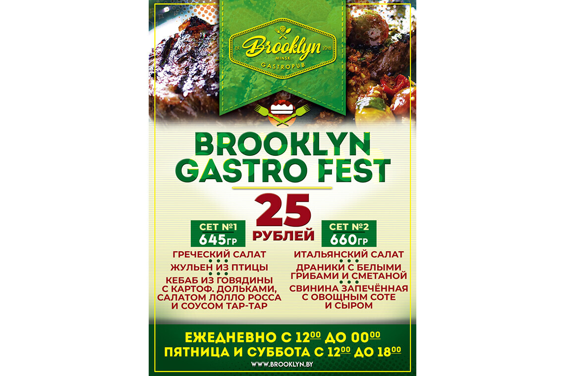 23 февраля для гостей заведения подготовили два сытных сета на выбор всего за 25 рублей. Сет №1: греческий салат, жульен из птицы, кебаб из говядины с картофельными дольками, салатом лолло росса и соусом тартар. Сет №2: итальянский салат, драники с белыми грибами и сметаной, свинина, запеченная с овощным соте и сыром.