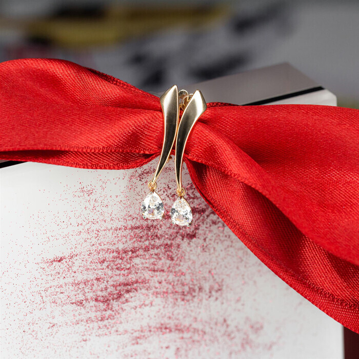 Серьги из красного золота с фианитом.