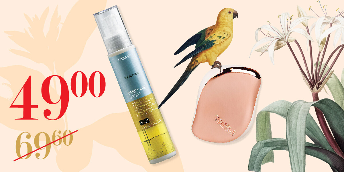 Набор для волос Teezer-Lakme — 49 руб. В него входят: оригинальная расческа Tangle Teezer (не повреждает структуру волос при расчесывании, не электризует, не вырывает, не тянет волосы; распутывает колтуны; зубчики изготовлены из гибкого, пластичного материала; ею можно расчесывать мокрые волосы; отличительная особенность — массаж головы, который улучшает кровообращение и способствует росту волос) и лосьон восстанавливающий для сухих и поврежденных волос Lakme, 100 мл.