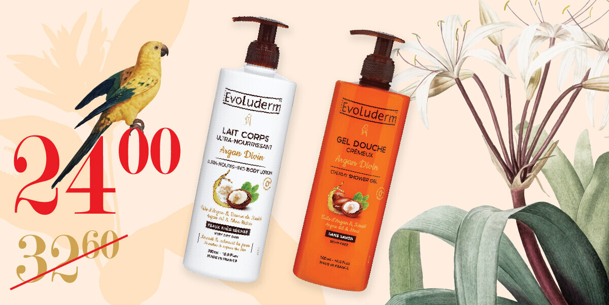 Набор EVOLUDERM — 24 руб. В него входят: кремовый гель для душа EVOLUDERM с аргановым маслом и маслом Ши, 500 мл, лосьон для тела увлажняющий с маслом Ши EVOLUDERM, 500 мл. EVOLUDERM — это французская линия средств по уходу за чувствительной кожей лица, тела и волосами на основе натуральных компонентов. Косметические средства Evoluderm не содержат парабенов, силиконов, красителей и минеральных масел. Их можно использовать для чувствительной кожи.