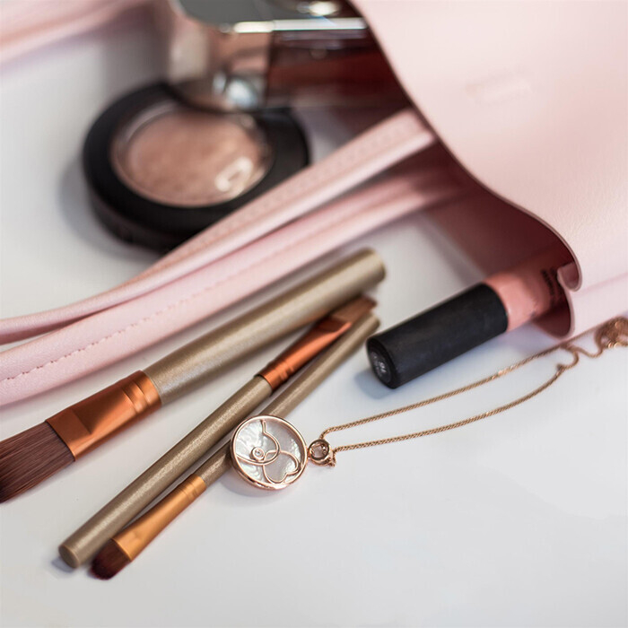 Подвеска из красного золота с перламутром и бриллиантом.