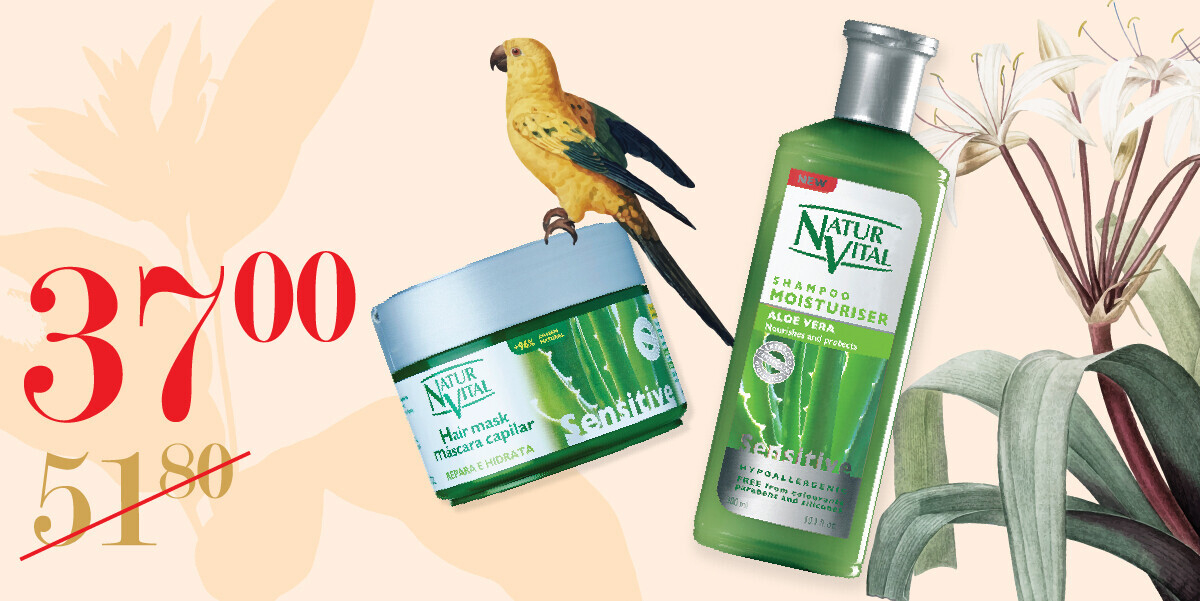 Набор для волос NATUR VITAL — 37 руб. В него входят: шампунь для волос NATUR VITAL, 300 мл, маска для волос NATUR VITAL, 300 мл. NATUR VITAL — испанский бренд фитокосметики, который поможет восстановить структуру волос, вернуть им здоровье. Средства не содержат парабены и силиконы.