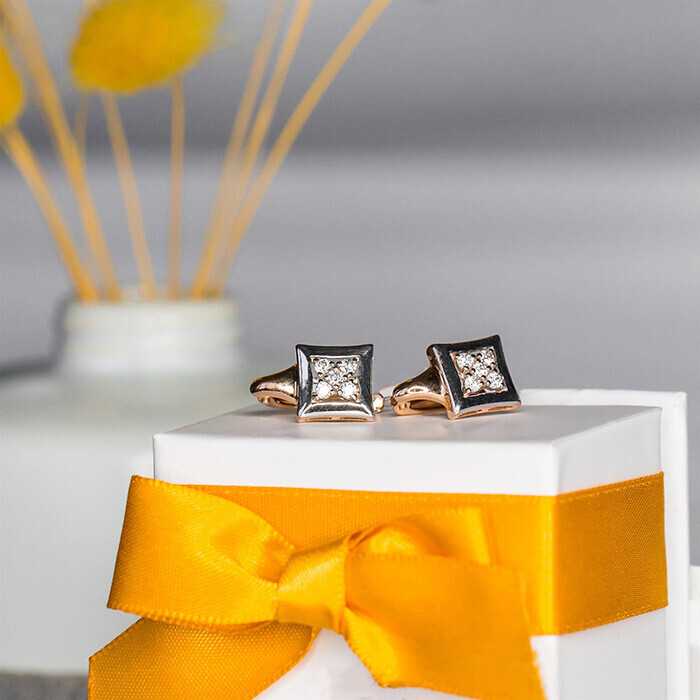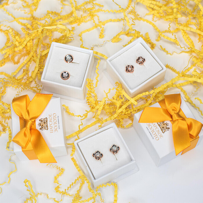 Пусеты из красного золота с фианитами.