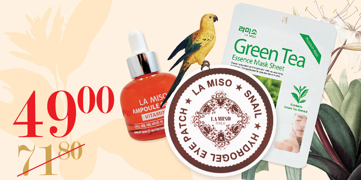 Набор La Miso — 49 руб. Сюда входят: патчи для глаз La Miso, 60 штук, сыворотка для лица La Miso, 35 мл, маска для лица La Miso. Этот подарочный комплект из 3-х бьюти-средств поможет вам поддерживать ухоженный вид за кожей каждый день.