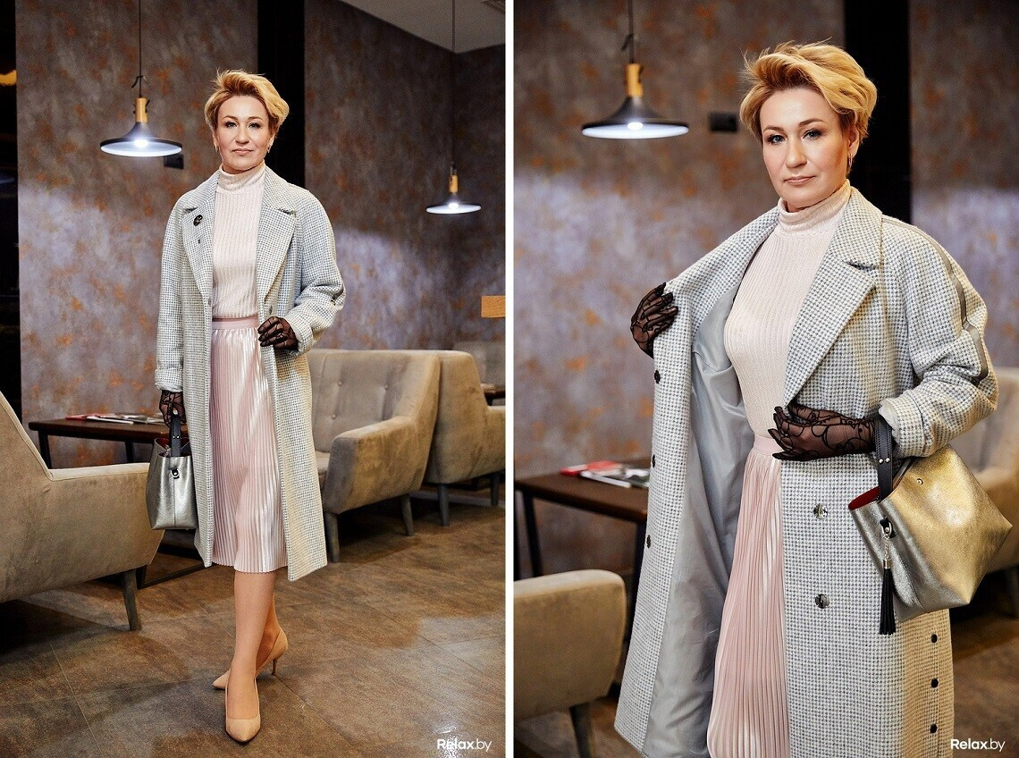 — Кремово-розовый комплект стал ответом на мои поиски женственного наряда. Образ получился таким нежным и весенним, что мне сразу захотелось показаться дочери и внуку вот такой — цветущей, светящейся, легкой. Понравилась удачная комбинация пальто с ажурными тонкими перчатками. По моему, получился образ, в котором любой женщине хотелось бы провести 8 марта. По крайней мере, я так планирую, — с улыбкой уверяет наша жизнерадостная героиня.