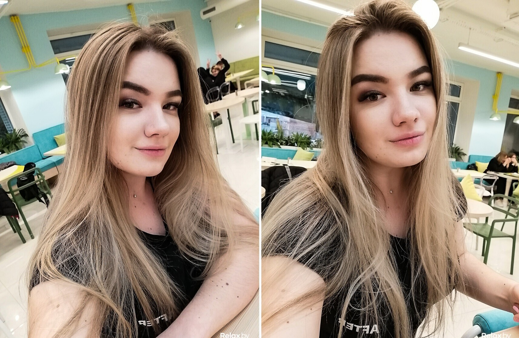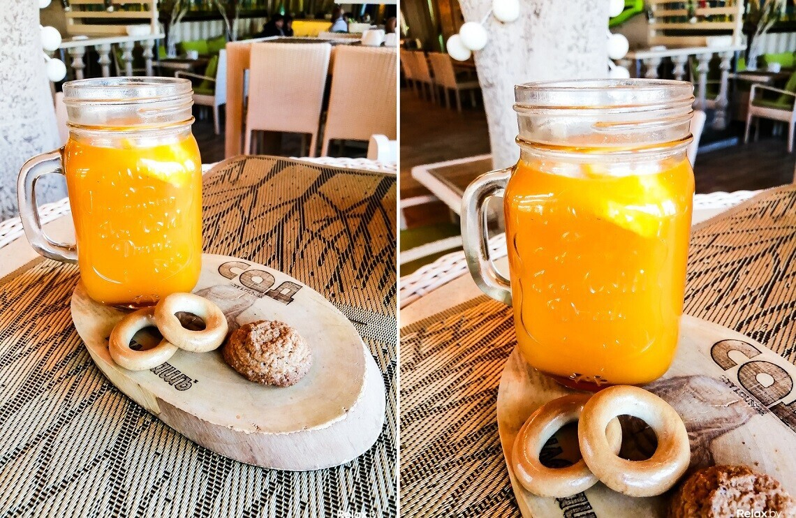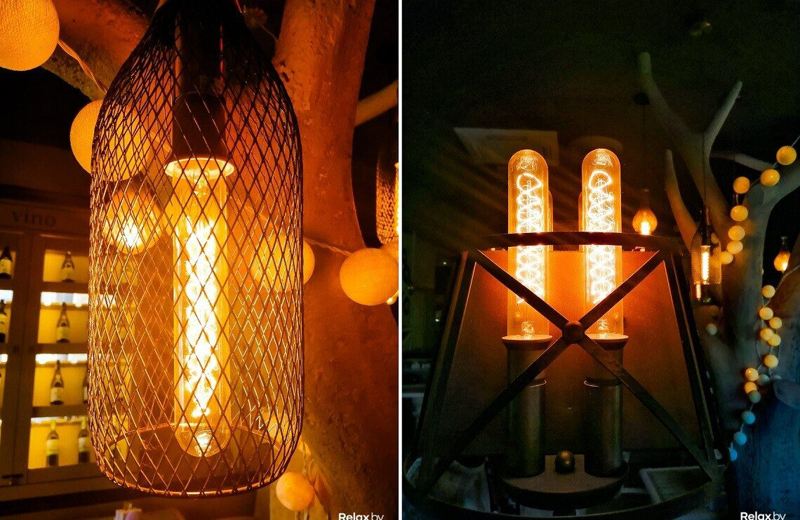 В заведении много естественного «холодного» света благодаря большим окнам. Сами лампы в нем — «теплые». Искусственный интеллект камеры смартфона подсказывает, как найти необходимый баланс.