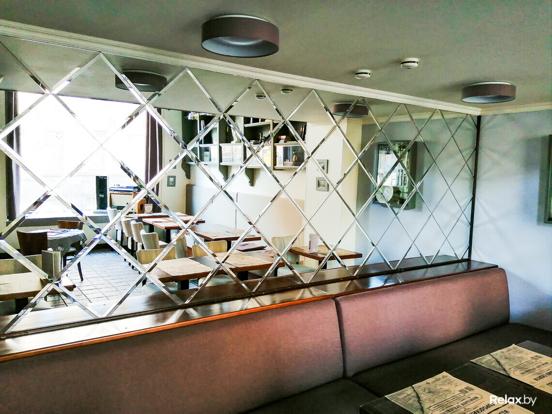 В зале кафе есть «селфи-стена» с зеркалами, в которой можно «словить» собственное отражение и немного попозировать.