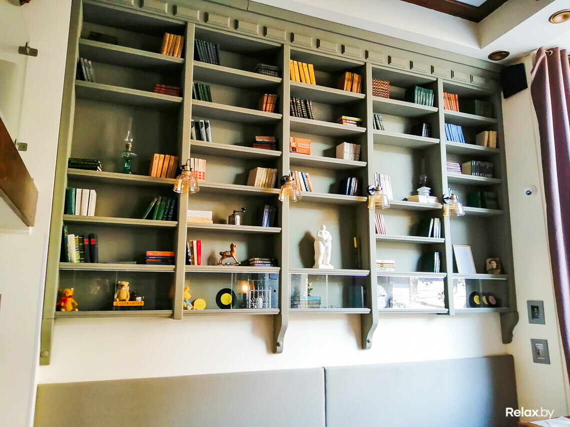 В качестве фона отлично подойдет большой книжный стеллаж во всю стену. Здесь же на полках можно найти любопытный реквизит для необычного снимка: положите на столик несколько книг или авторскую куклу из мини-выставки и сделайте душевное фото, которое расскажет о хорошо проведенном вечере.
