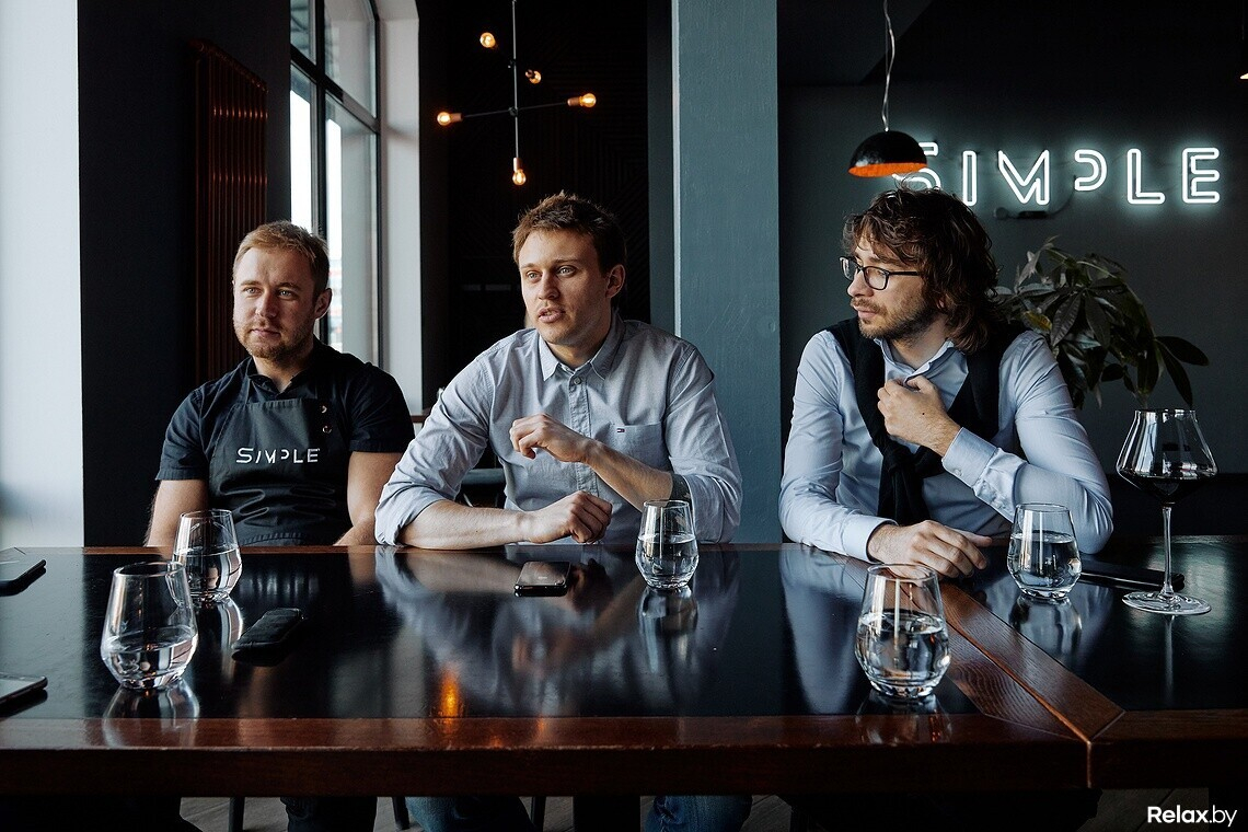 Каждые три месяца в Simple появляется уникальный сезонный сет из пяти блюд с напитками. Недавно запустился шестой по счету — весенний, а буквально на днях стартовал экспериментальный воскресный от су-шефа. Кажется, в заведении устроили настоящий сет-бум. Relax.by поговорил с совладельцем ресторана Владиславом Луневичем, шеф-поваром Алексеем Свидрицким и сомелье Артемом Хамицевичем о волнении перед каждой «премьерой» и шоке от реакции гостей.