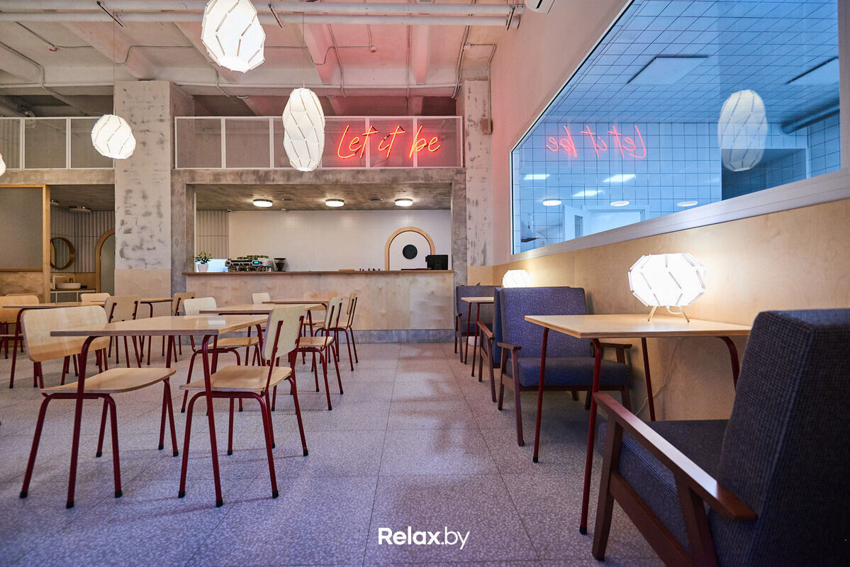 Кафе-пекарня Let it be — одна из немногих точек минского общепита, которая специализируется именно на завтраках: их здесь готовят с раннего утра и до позднего вечера 7 дней в неделю. В меню вы найдете всего семь блюд, большая часть из которых — с омлетом, скрэмблом и яйцом пашот.