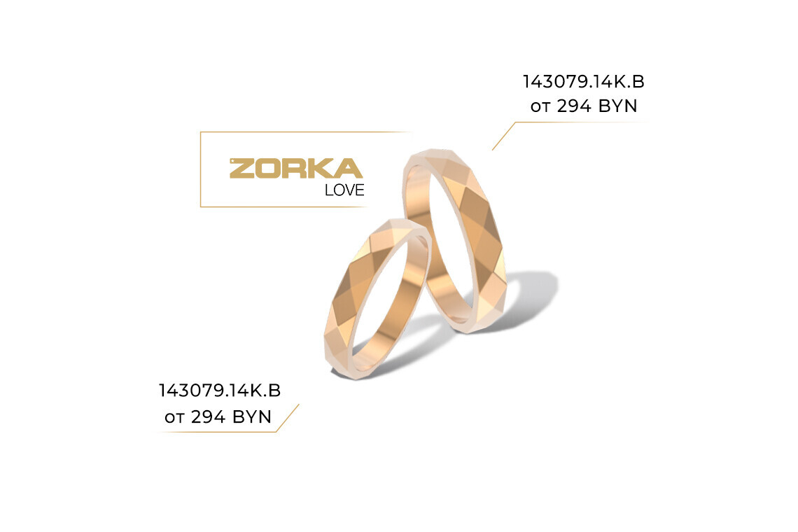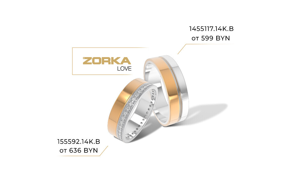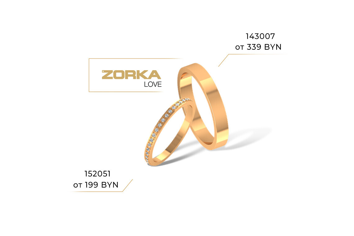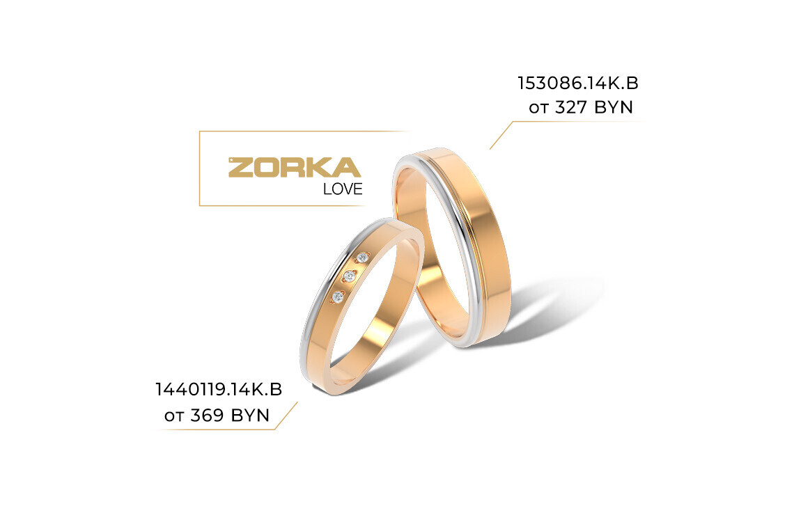Кольца ZORKA Love в магазинах ZIKO представлены в широком ценовом диапазоне. Более того, в ZIKO действует уникальное предложение сезона 2019 года — «Свадебные хиты месяца». Благодаря ему будущие супруги могут купить стильные обручальные кольца еще выгоднее, чем обычно.