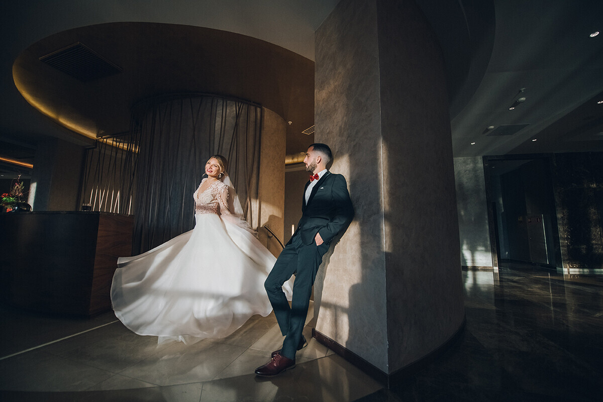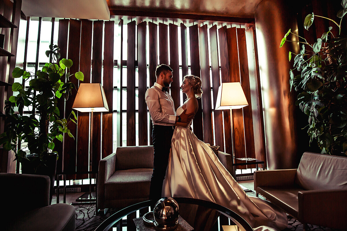Ольга: Мы всегда рассказываем молодоженам, можно ли осуществить их идеи в отеле «Ренессанс». У нас универсальное оформление, которое можно адаптировать под многие задумки. Но не все хотят идти по стандартному пути: некоторые пары обращаются к нам с просьбами реализовать совершенно невероятные идеи.