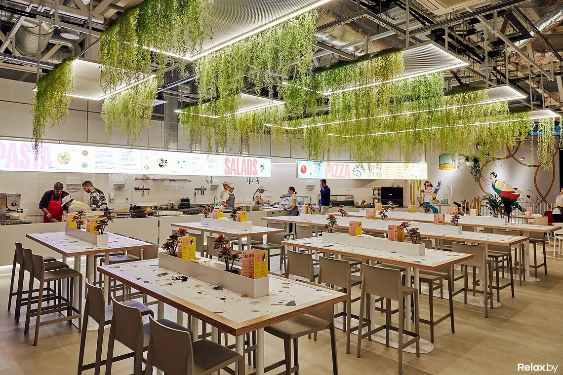 Вечером здесь в Hunky Dory можно послушать вокалистов и кавер-бэнды, планируются выступления стендаперов, настольные игры и «Мафия». Ночью — сеты от известных диджеев, afterparty. Кухню ставил Вадим Астори, известный минский шеф-повар. Подают, в основном, европейские блюда с авторским акцентом.