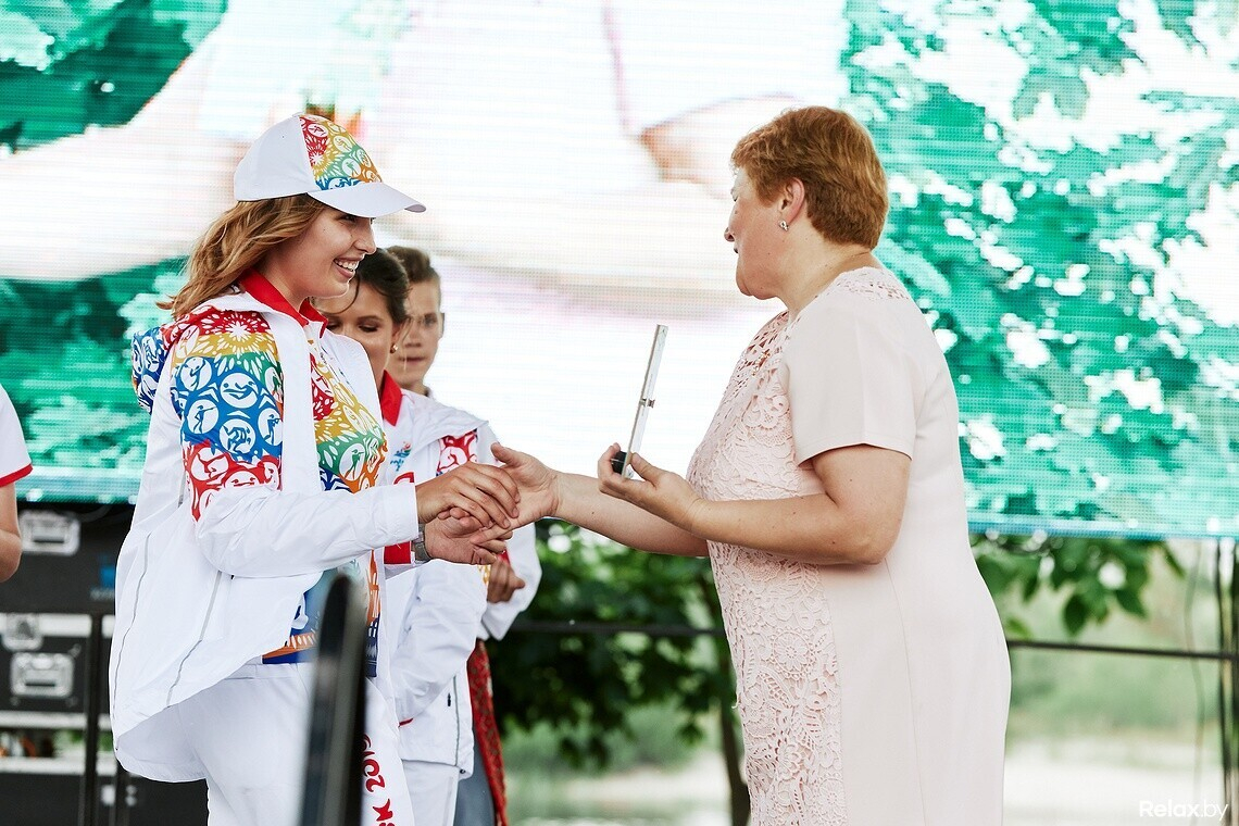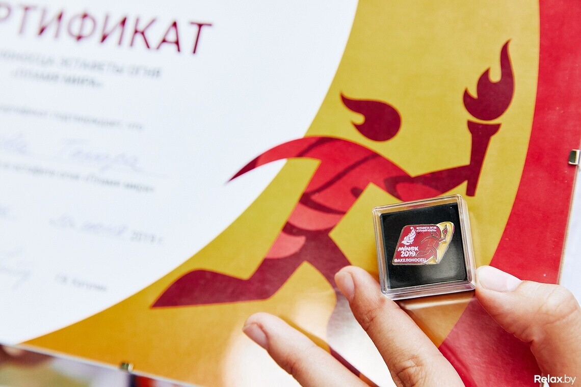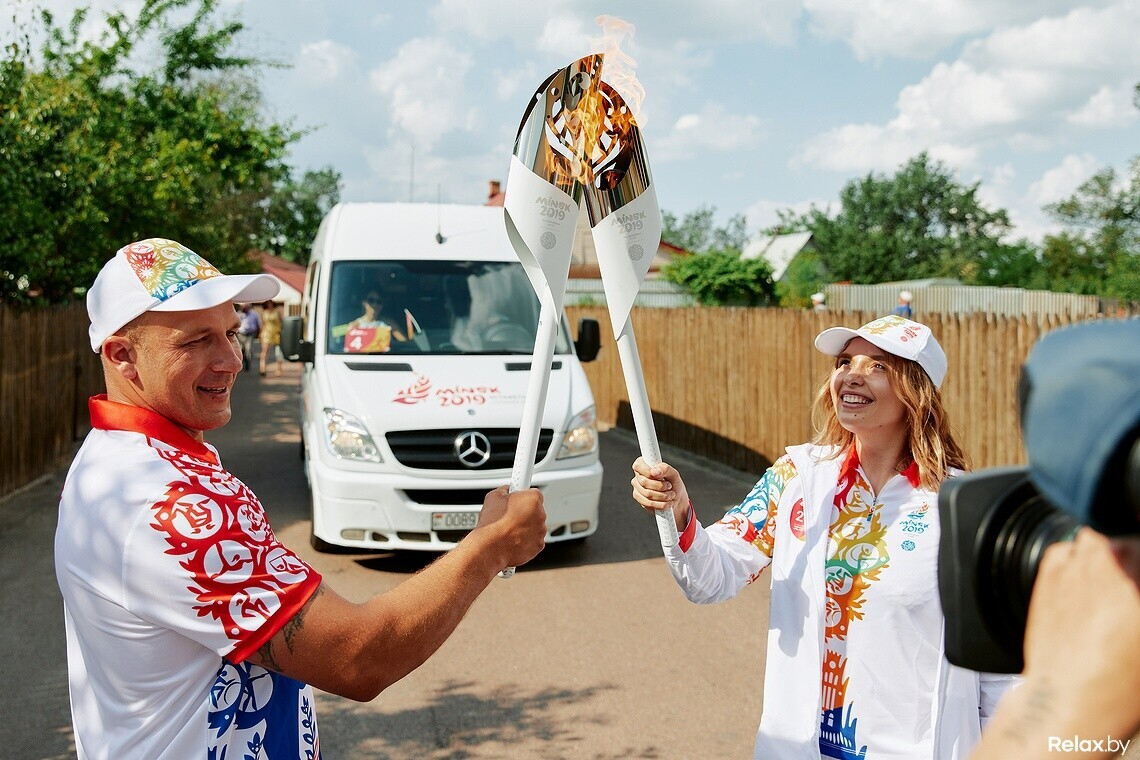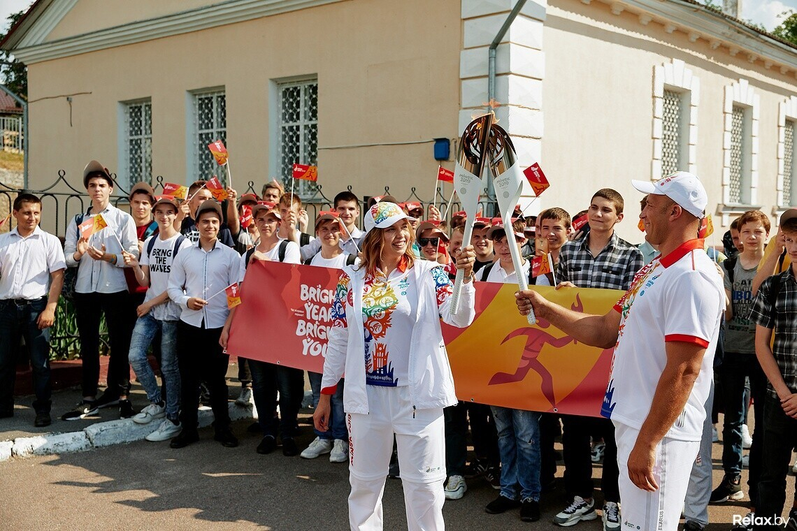 Эстафета огня «Пламя мира» II Европейских игр начала путь по Беларуси 12 мая. Вчера символ спортивного форума принимал Мозырь, где факел по улицам города пронесла ведущий специалист по продажам и интернет-маркетингу ООО «Артокс Лаб» Тамара Юданова.
