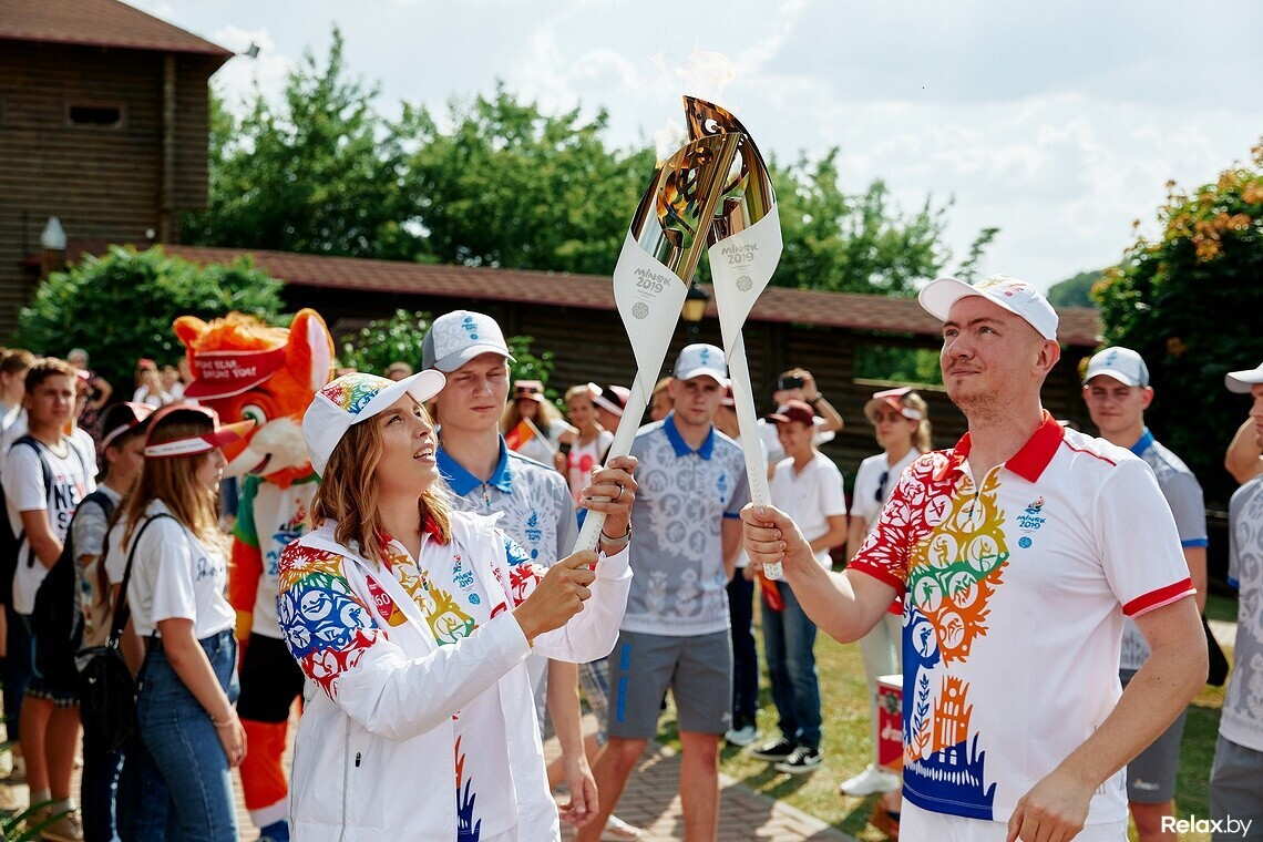 Солистка группы Aura Юлия Быкова несла факел по территории замка и на смотровой площадке, передав его композитору и продюсеру Евгению Олейнику. После этого огонь из факела в факел перешел к ведущему специалисту по продажам и интернет-маркетингу ООО «Артокс Лаб» Тамаре Юдановой.