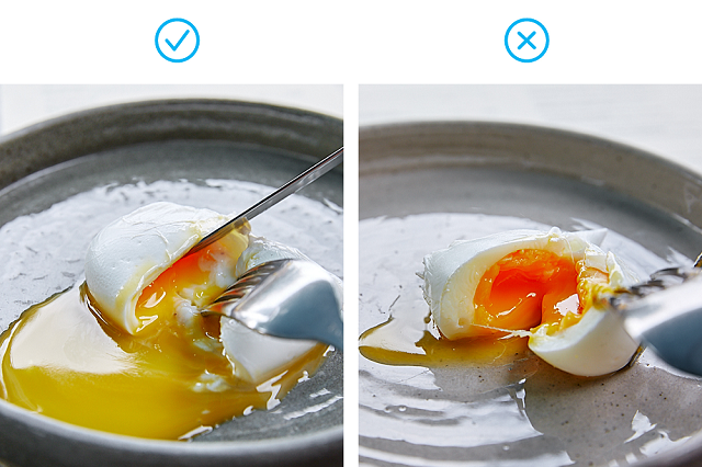 В заведении определить неправильное яйцо пашот легко: оно просто не растечется. Или растечется слабо. У яйца будет плотный белок и свернутый на несколько миллиметров желток. Вам может быть вкусно, но это будет не пашот, а яйцо всмятку.