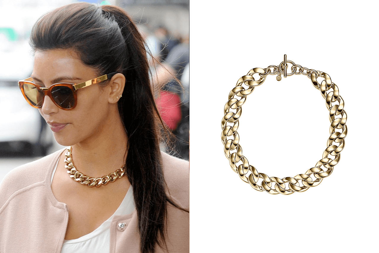 Массивное колье-цепь, как у Ким Кардашьян — звезды американского реалити-шоу и жены известного рэпера Канье Уэста — можно найти в коллекции Michael Kors Jewelry.