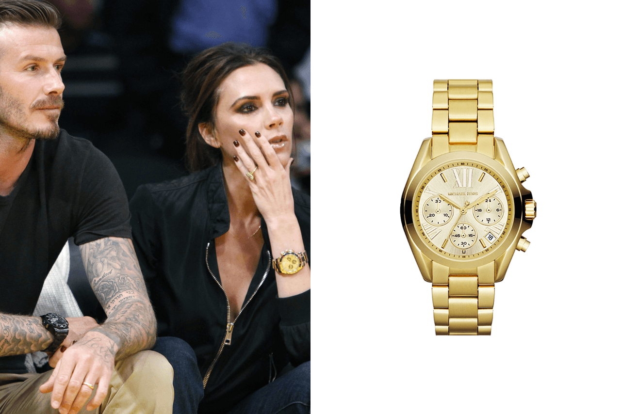 Золотистые часы с металлическим браслетом остаются на пике популярности уже не первый сезон. Эти модели можно найти в коллекции многих брендов, в том числе у Michael Kors. Их можно заметить у многих представителей «селебрити», в том числе у жены известного футболиста, знаменитой британской певицы и дизайнера Виктории Бекхэм. Неудивительно, что многие копируют ее внешний вид, ведь она — настоящая икона стиля. У нее в коллекции есть много брендовых часов, в том числе от Michael Kors.