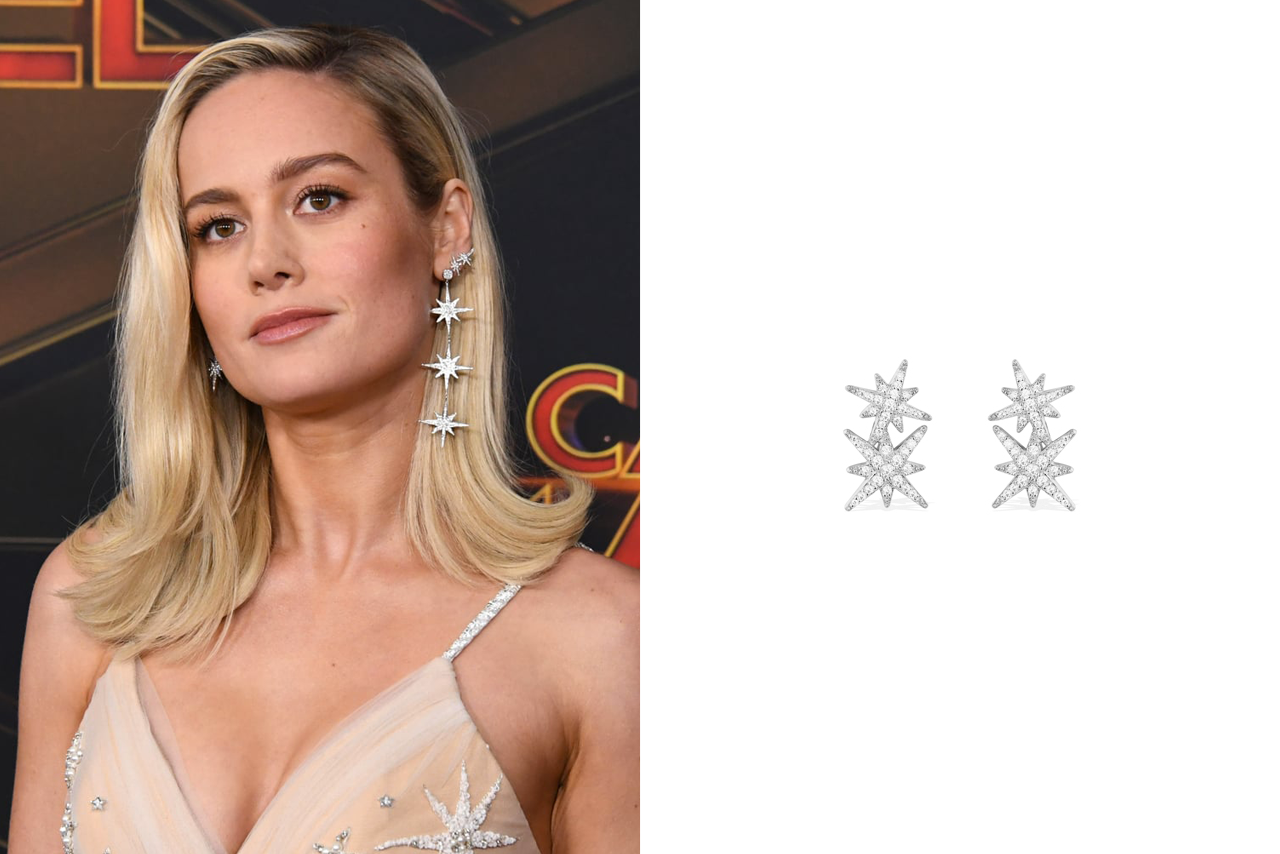 У американской актрисы, певицы и кинорежиссера Бри Ларсон в арсенале украшений также есть миниатюрные сережки в виде небесных светил, усыпанные камнями.