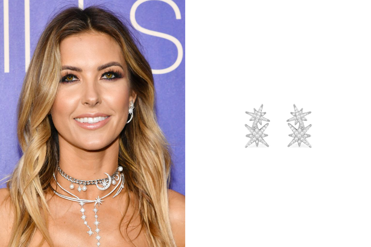 Кстати, эти же серьги выбрала для себя известная своей роскошной фигурой светская львица, актриса и участница популярного реалити-шоу The Hills на MTV Одрина Пэтридж. На премьере нового сезона реалити-шоу The Hills: New Beginnings на MTV Одрина появилась в роскошном блестящем платье-бандо цвета металлик. Свой образ она подчеркнула целой россыпью украшений по мотивам звездного неба.