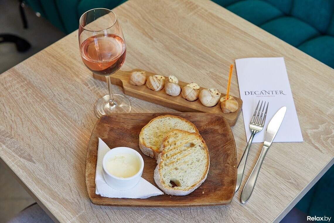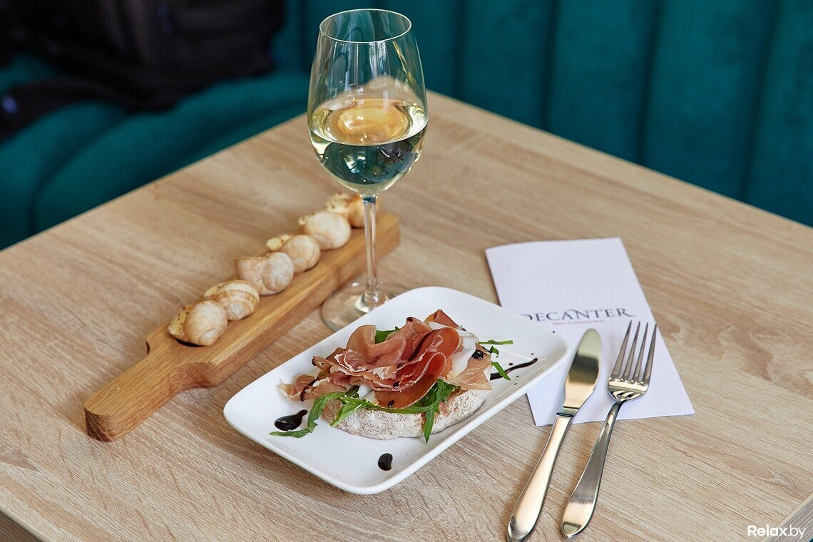 Карта закусок составлена по принципам эногастрономии. Самые популярные позиции — сыры, прошутто, оливки, маслины, вяленые томаты. Есть и деликатесы — улитки. Владимир рассказывает, что протестировали много производителей улиток, но остановились на белорусских: достойный баланс цены и качества.