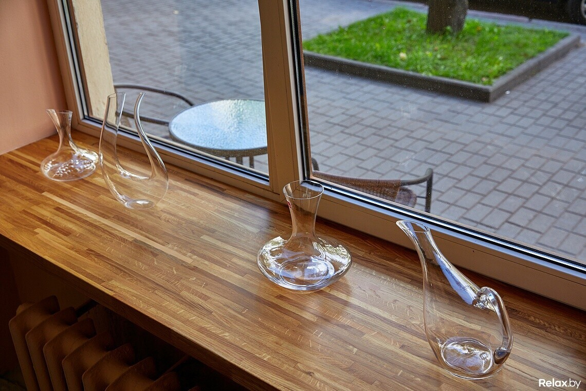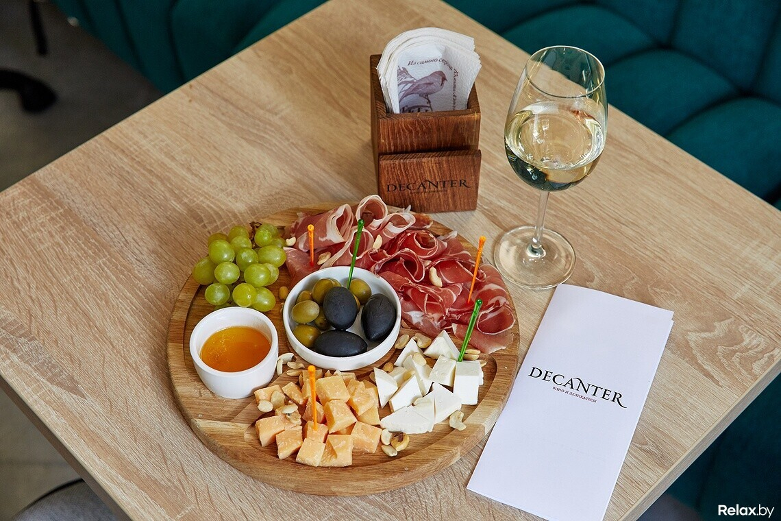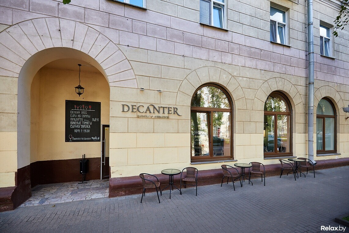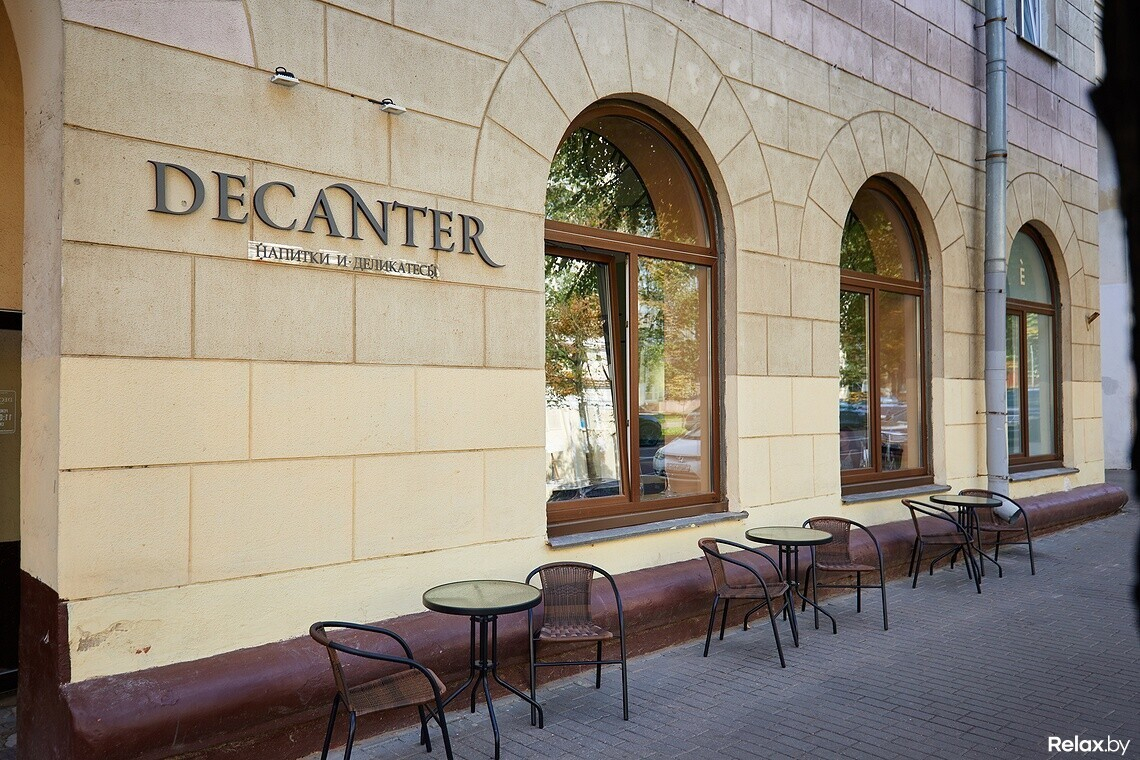 Decanter расположился в 50 метрах от метро «Площадь Победы», но здесь почти всегда есть свободные парковочные места. Работает небольшая терраса: пока это простые столики в европейском стиле. Закуски из меню можно взять навынос. В планах продавать эногастрономические сеты для домашних вечеринок: например, сырное плато с хамоном по цене не выше магазинной.