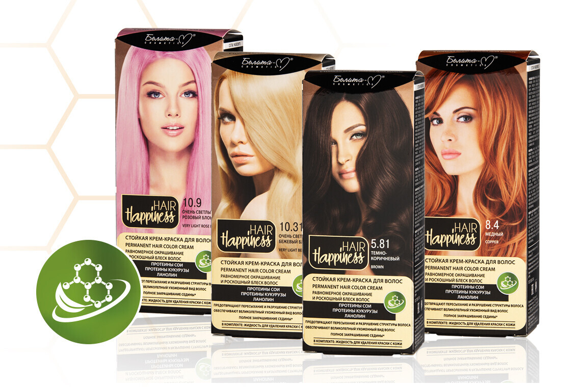 Крем-краска HAIR Happiness защищает волосы от сухости и ломкости и особенно актуальна после иссушающего действия летнего зноя. Ее кремовая формула насыщена растительными протеинами, которые надежно защищают целостность структуры волос в процессе окрашивания. А ланолин в составе сохраняет упругость, гладкость и придает волосам роскошный блеск. Прямо как в рекламе!