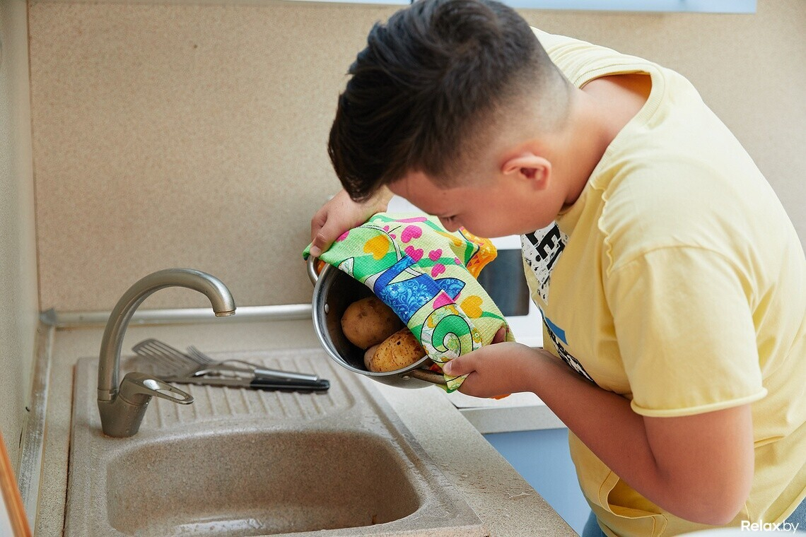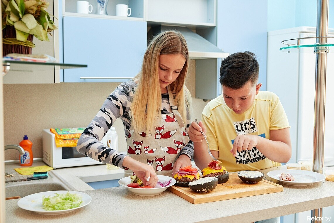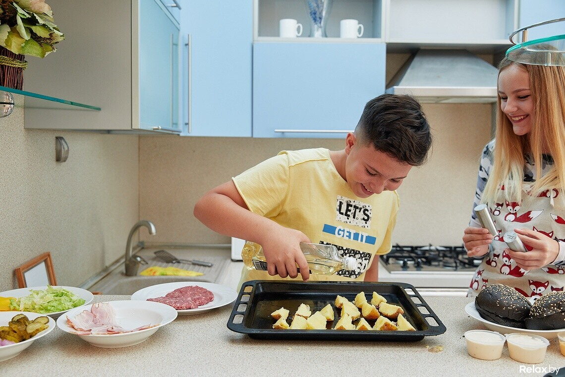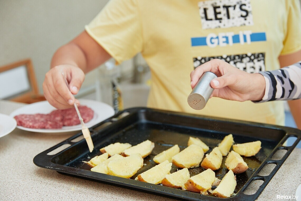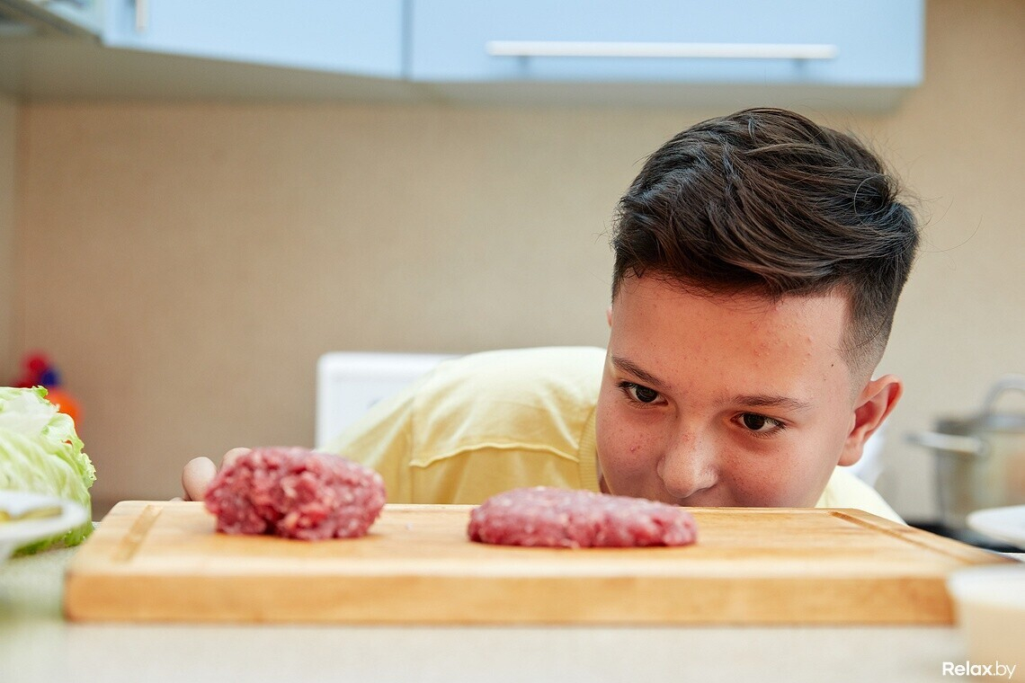 — Я готовлю лучше всех в семье, — уверенно заявляет Даник. — По сути, нам с Алесей нужно будет всего лишь помыть и нарезать овощи, пожарить бекон, котлеты, запечь в духовке картофель. Это легко, справимся!