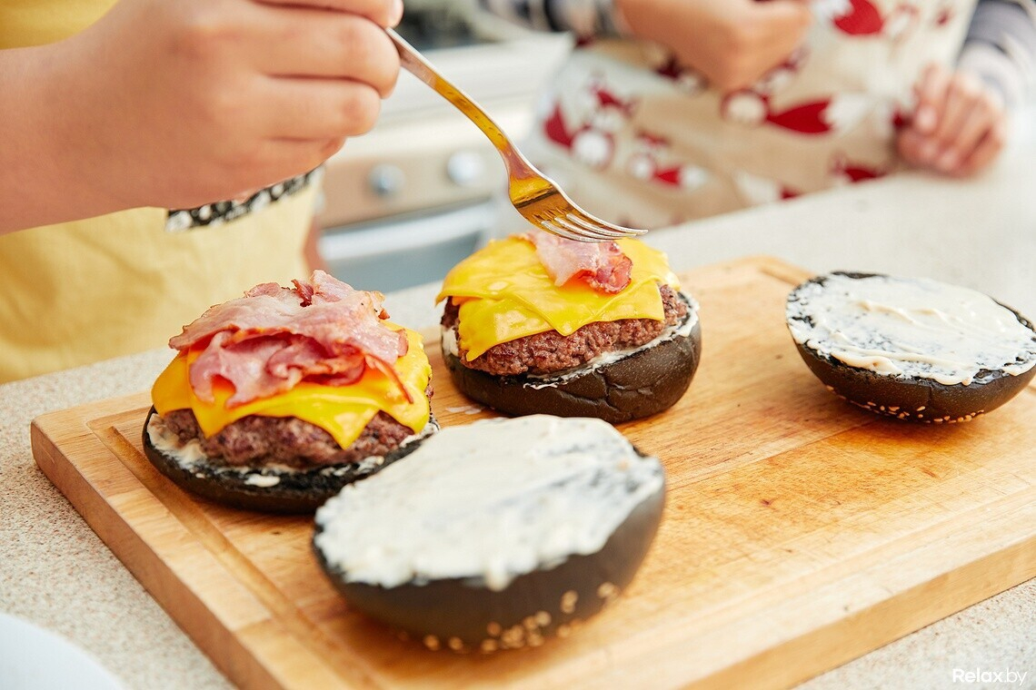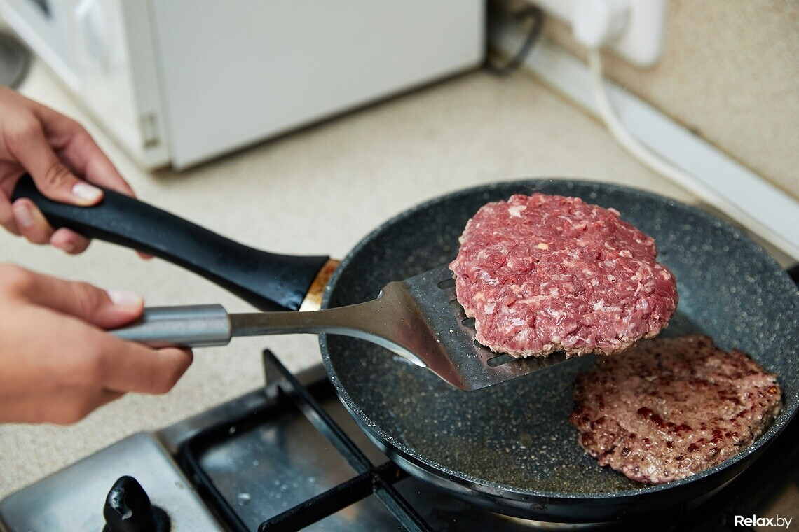 — Наверное, это самый сложный этап. Его я как мужчина беру на себя. Котлета должна быть не пышной, толщиной примерно 1 сантиметр, чтобы бургер не развалился.