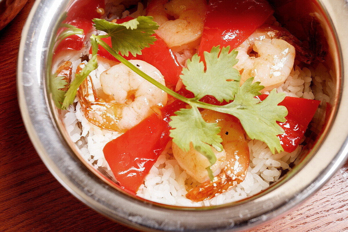 - Креветки в кисло-сладком соусе с гарниром