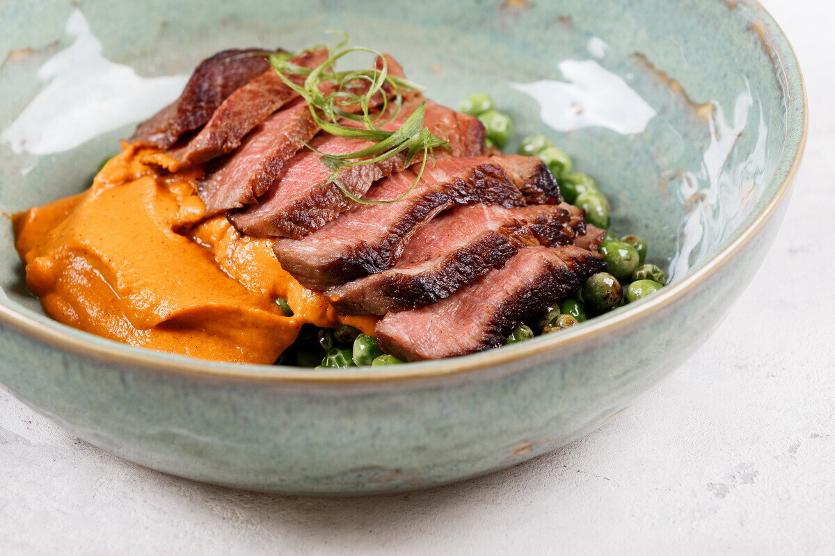 - Каша из картофеля с томленой говяжьей лопаткой и копченой сметаной