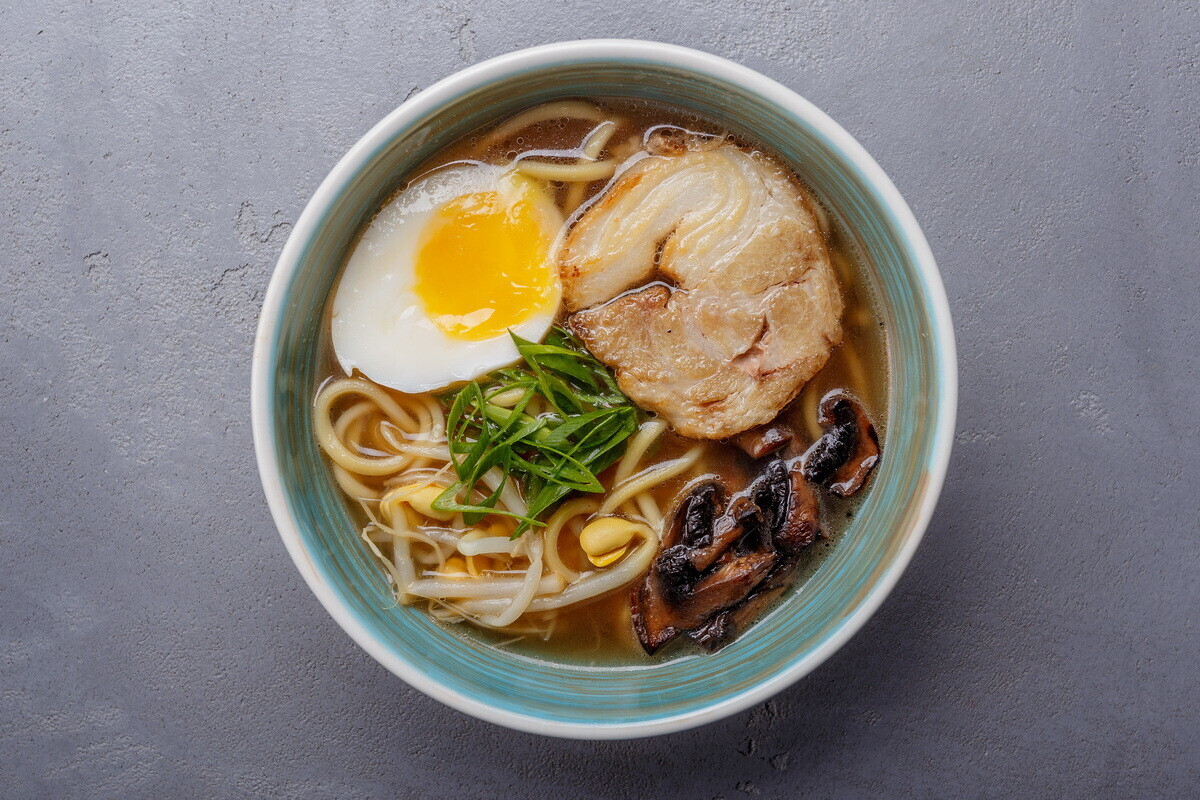 - Рамэн со свининой Чашу – это наваристый бульон с лапшой и приготовленной по особому рецепту свининой Чашу.