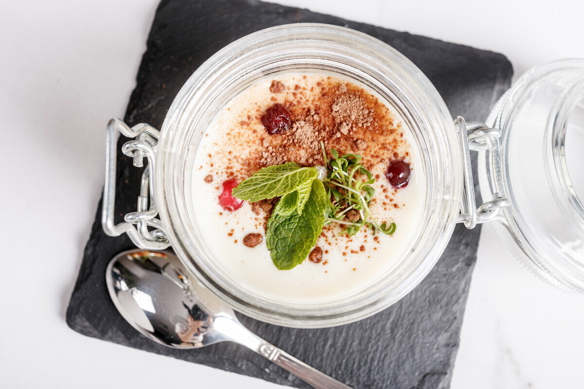 - Десерт «Сгущенное молоко». Подается с хрустящими тыквенными палочками