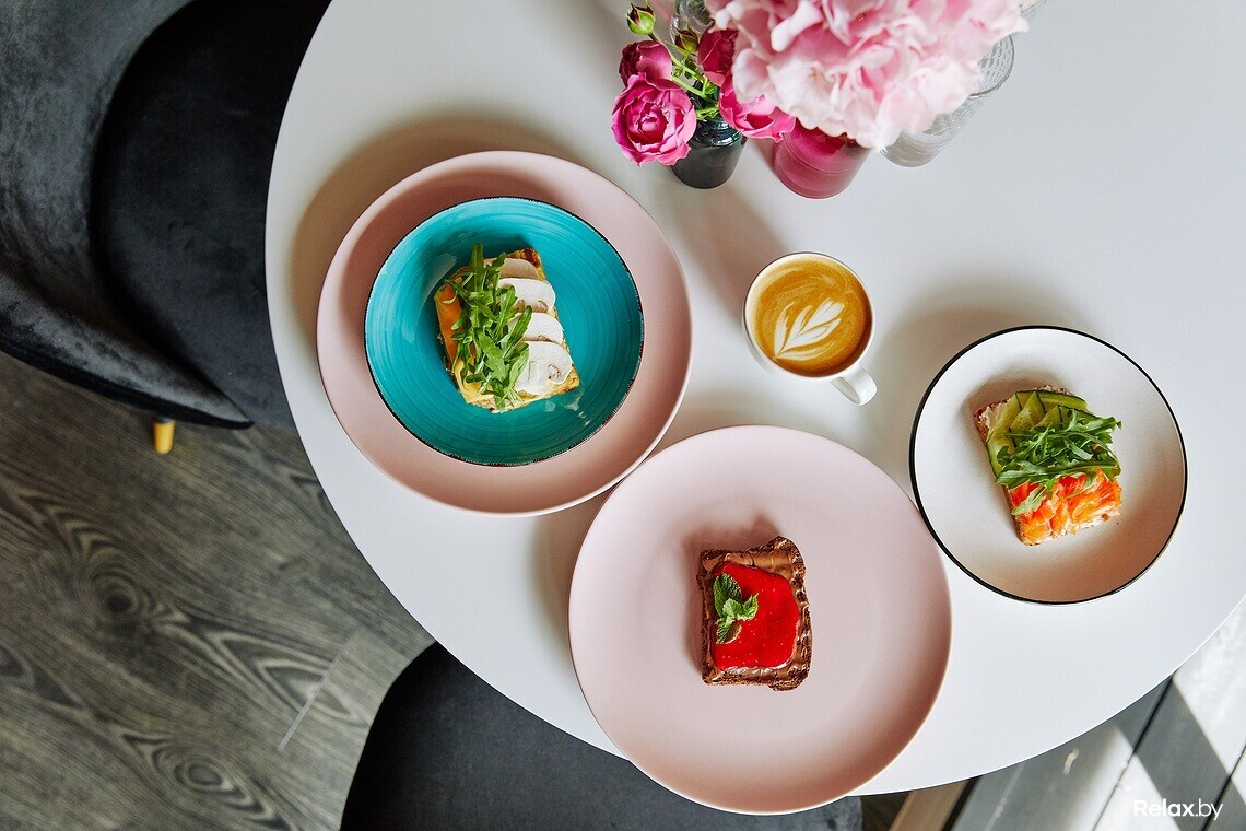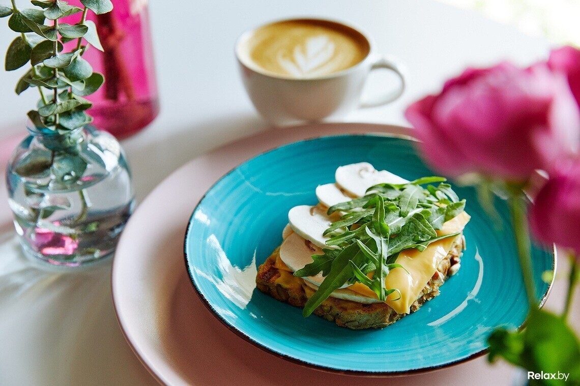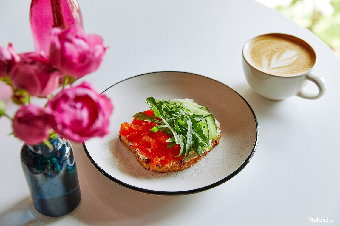 Все блюда в меню кофейни собственного производства, полуфабрикаты не используются (в том числе десерты из заморозки). Зелень и овощи для блюд из меню с пометкой «эко»: их Женина мама выращивает на фермерском предприятии. Команда отказалась от стандартных позиций а-ля круассаны и чизкейки. Здесь можно попробовать авторский морковный торт, брауни или медовик. Есть вегетарианские завтраки, десерты, тосты.