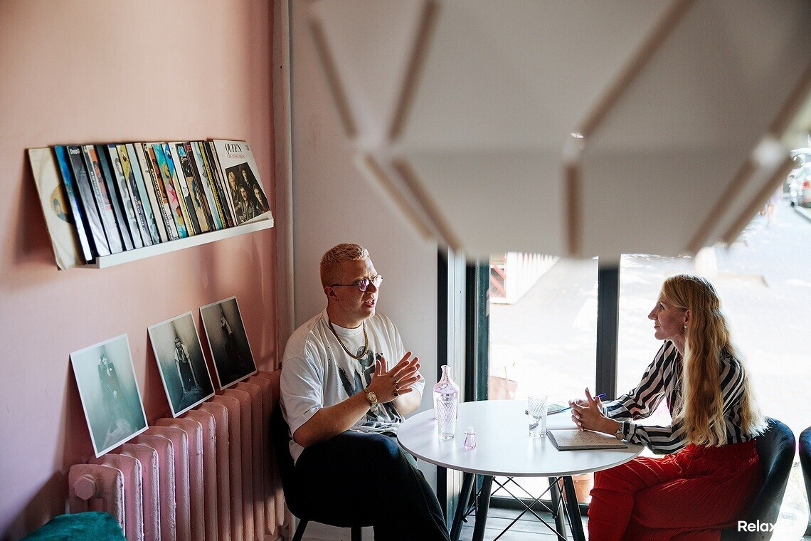 Поднимите голову: у нас странный потолок. Мы не вбухали в него тысячи долларов. Человек просто поднимает голову и задается вопросом: почему так? Это смело, это диссонанс. А бизнес, особенно entertainment, всегда должен вызывать вопросы. Я одеваюсь так, чтобы ко мне были вопросы: цвет волос, что написано на майке, что у меня на руках… Когда нет вопросов — ты скучный.