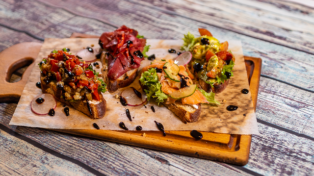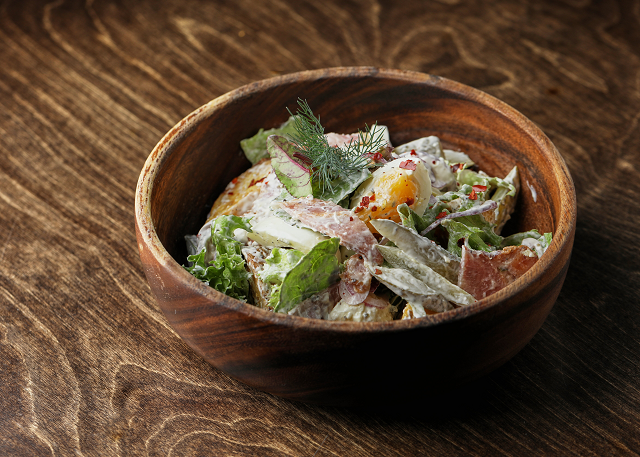Отварной говяжий язык, сыровяленая колбаса, фермерское соленое сало, пармская ветчина, нежная буженина, гренки с обацдой и смальцем. Подается с хреном, редиской, маринованными огурцами и томатами черри (30 рублей)