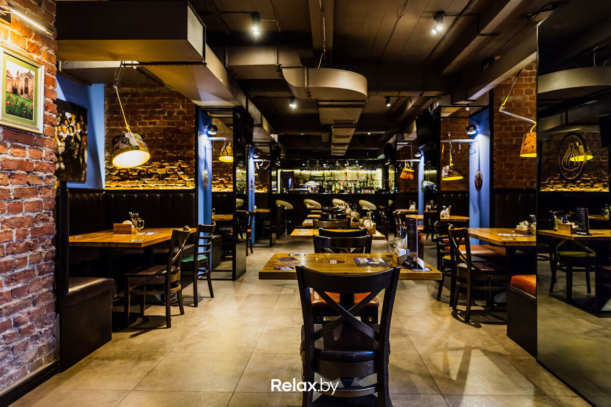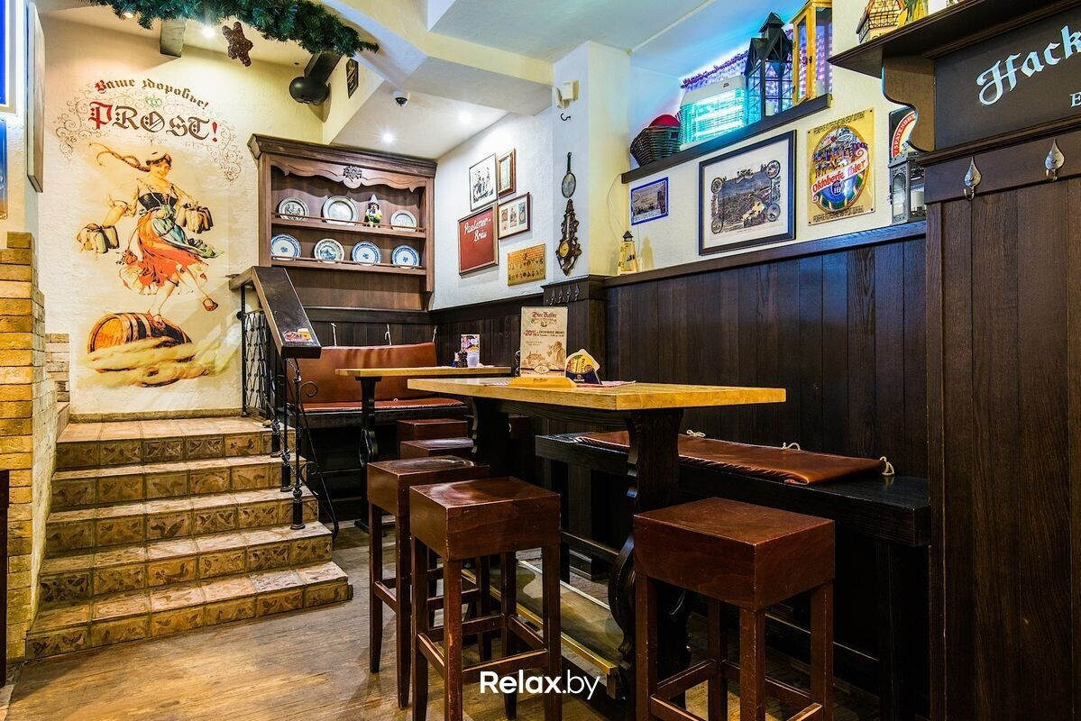 В немецком «пивном погребке» можно попробовать 8 сортов разливного пива. В том числе уникальные региональные сорта, которые в розливе в Беларуси подают только здесь. Например, традиционный сорт подвального пива Hacker- Pschorr KellerBier из Мюнхена. Октоберфест здесь отмечают по канонам: брецели, официантки в баварских костюмах, тематическая еда и музыка.