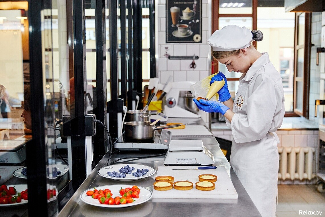 Небольшую экскурсию в закрытые для посторонних глаз уголки кухни для журналиста Relax.by провели шеф-пекарь Александр и шеф-кондитер Екатерина. По условиям франшизы мы не можем рассказать и показать вам больше, чем есть в этом репортаже, — многие любопытные факты держатся в строгом секрете. Но вы наверняка поймете, из чего и как готовят одни из самых популярных багетов и круассанов Минска.