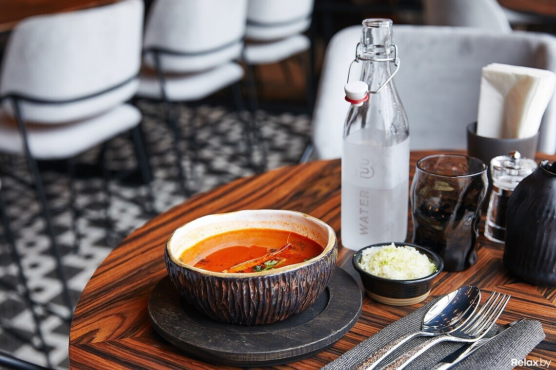 Пастрами — еще один тренд, который только сейчас доходит до Минска. Говяжью грудинку маринуют в рассоле не менее 7-8 дней. Ежедневно повара ее бережно переворачивают, чтобы вкус сложного маринада из специй распределился равномерно. Затем еще сутки понадобится на приготовление по технологии су-вид, и лишь после этого нежнейшую пастрами подают гостю.