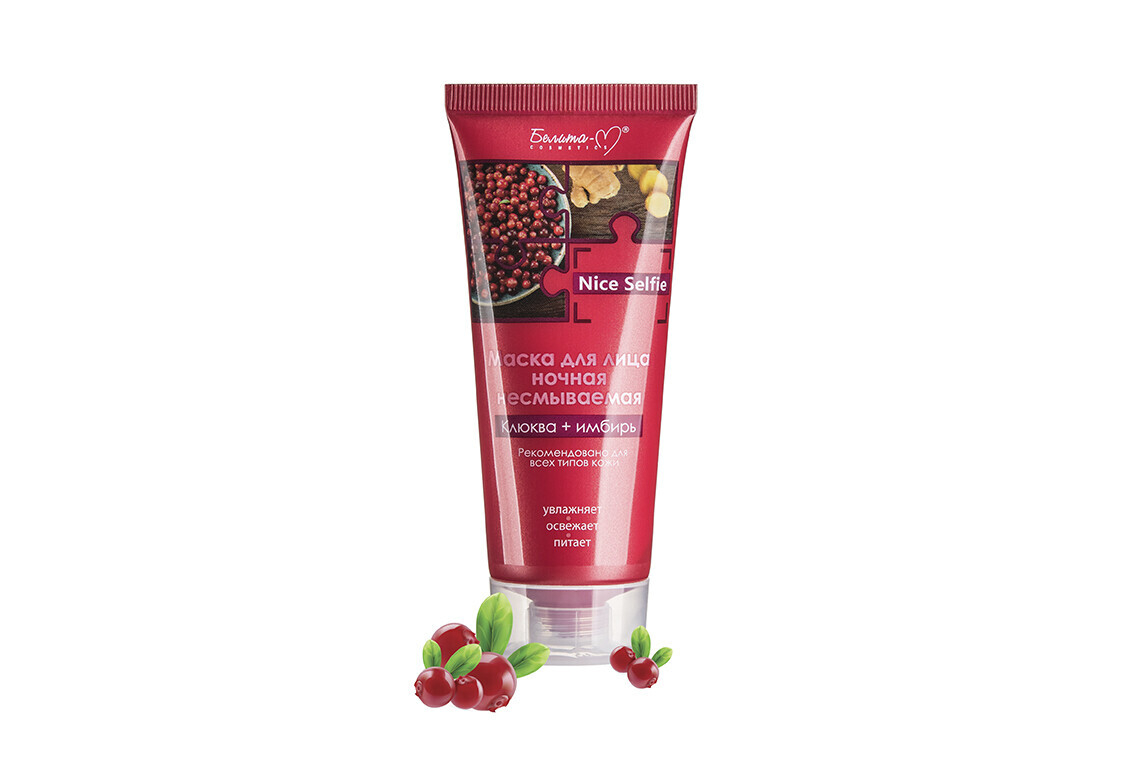 Хотите, чтобы кожа радовала восхитительной свежестью и ровным тоном? Тогда попробуйте ночную несмываемую маску «Клюква+имбирь» Nice Selfie: маска насыщена увлажняющими и витаминизирующими компонентами, которые восстанавливают естественный уровень гидратации кожи в ночное время. Входящие в состав растительные экстракты и масло миндаля насыщают клетки кожи необходимыми ценными веществами и повышают ее защитные функции, устраняя воспаления и сухость, стирая признаки усталости кожи и возвращая коже здоровое сияние. Утром кожа выглядит безупречно ровной, восхитительно свежей и отдохнувшей.