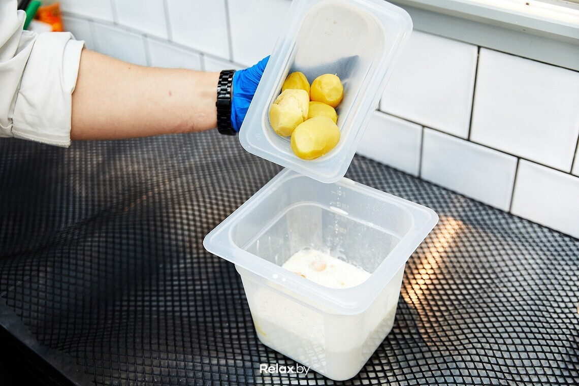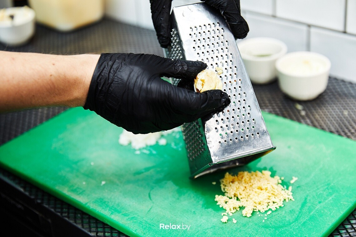 - Лук очищаем от плодоножки, натираем. Муку просеиваем, картофель калибруем, промываем, варим и протираем через сито.