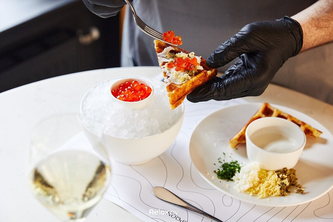 Отличная пара для икры — блюда из муки и картофеля: вафли, блины, оладьи, драники. Последние дополняйте жирной холодной сметаной. Важно понимать, что икра не может быть основным продуктом в блюде. Она в любом случае — дополнение, подчеркивающее вкус. Как, например, в случае с лососем: это сочетание, продуманное самой природой.