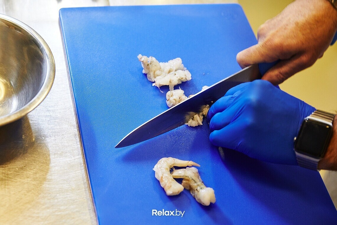 Не стоит бояться сырых креветок в тартаре. Важно быть уверенным в качестве продукта. Иньяцио использует креветки от «Джон дори», метод шоковой заморозки применяется к ним сразу на судне после вылова. Важно, чтобы после этого креветки больше не размораживались. В этом случае они будут абсолютно безопасными. Процент льда в таком продукте — всего 7-8%.