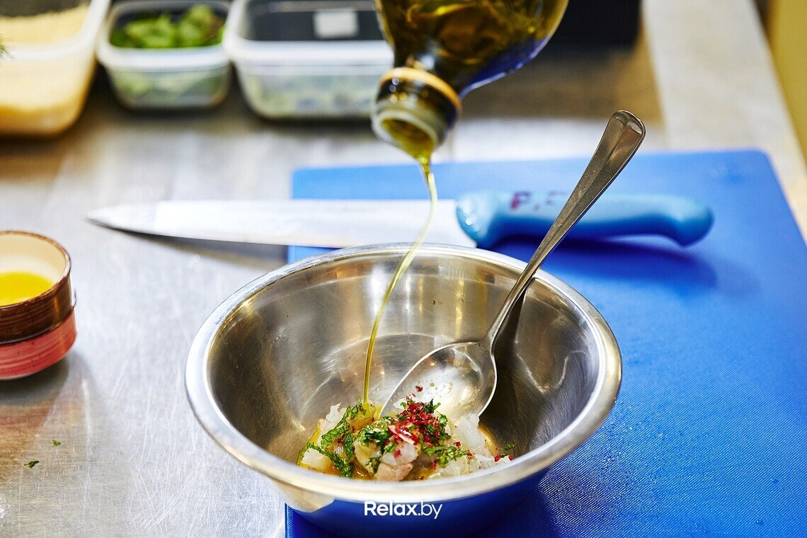 В гастрономии есть правило: сыр не стоит сочетать с рыбой. Например, дорадо, форель или сибас — очень деликатные продукты, сыр к ним точно не подходит. Иньяцио даже не поливает лимонным соком рыбу на гриле. Лимон — это явная кислинка, которая убивает естественный вкус продукта. Шеф использует альтернативный вариант, делает лимонный крем. Он получается более нежным и дает лишь вкусовой оттенок, не «перетягивая на себя одеяло».
