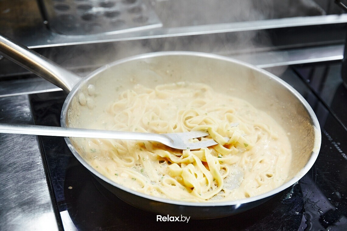 — Качество можно определить даже по внешнему виду. Правильная паста не должна быть глянцевой. Она слегка шероховатая, неидеальная. Что же касается состава, то есть лапша на яйцах. Она более калорийная и варится быстрее. А вот от продукта на муке грубого помола семола потолстеть вряд ли получится. Вообще, то, что паста вредит фигуре, — большое заблуждение. Все зависит от соуса. Если он, например, на сливках, то и блюдо окажется калорийным. В своем рецепте я предлагаю легкий соус, такую пасту можно есть хоть каждый день.