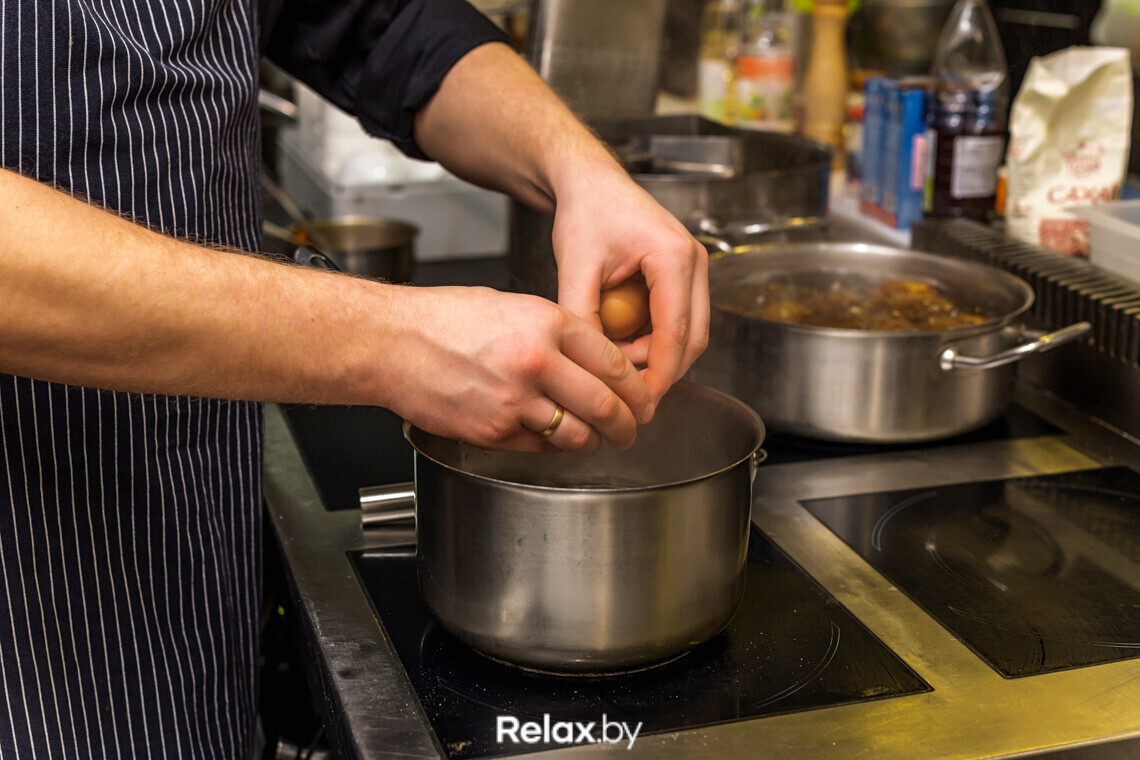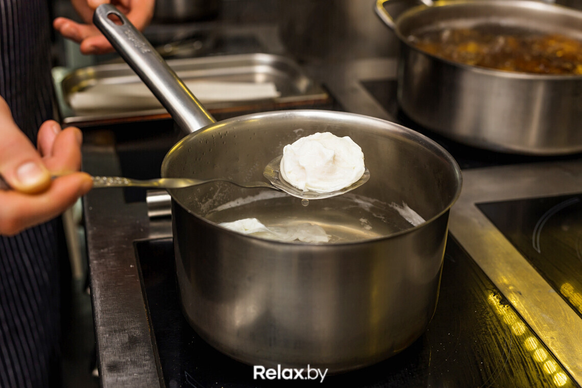 — Соус делаем в первую очередь, яйца — в последнюю. Важно, чтобы они не успели охладиться при подаче, здесь на счету каждая минута. В противном случае, желток потеряет текучесть, а гость получит яйца всмятку, — объясняет Денис. — При варке также следует быть внимательным. Пашот в среднем готовится около трех минут.
