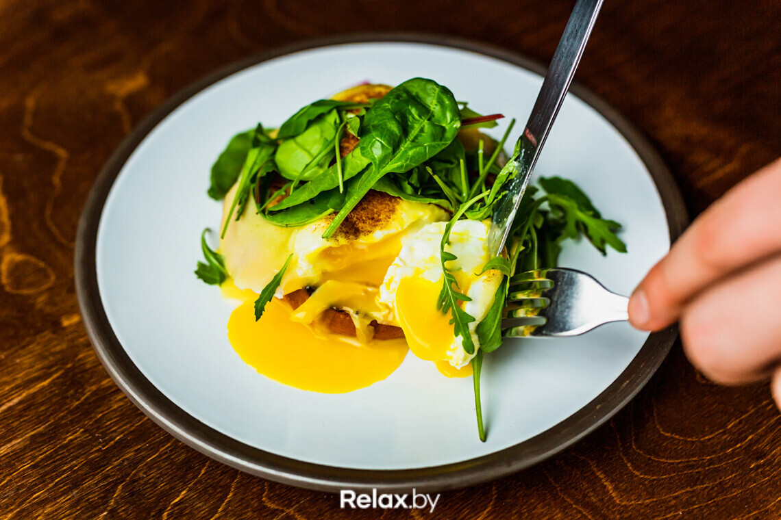 — Например, в меню Feelini уклон идет в сторону Роял. Это те же яйца Бенедикт, только вместо мяса используется лосось — мы его маринуем самостоятельно, — рассказывает шеф-повар. — В классике не используется зелень — у нас, напротив, добавляется микс-салат. Это придает блюду свежесть. Некоторые заменяют мясо овощами, например, шпинатом. Тогда это уже яйца Флорентин.