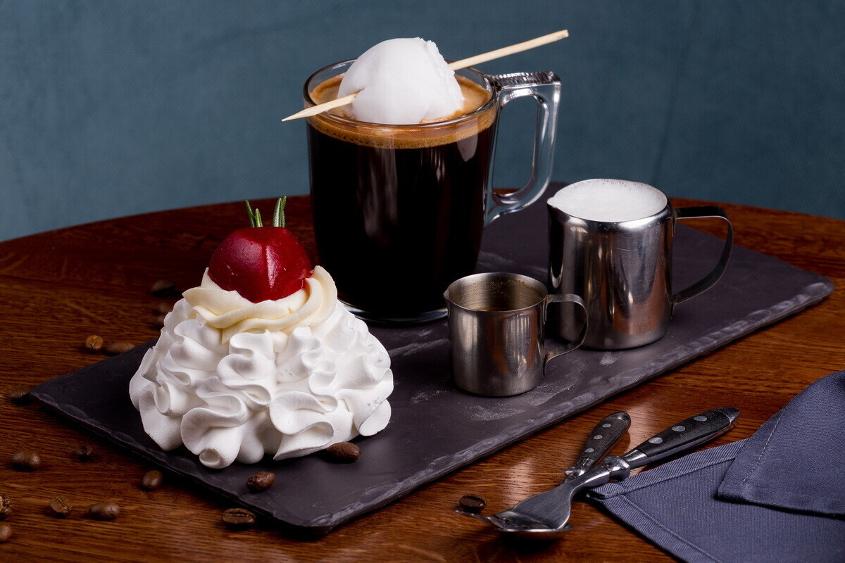 Кофе, молоко, мороженое и отвар подаются отдельно, чтобы каждый гость мог собственноручно создать свой уникальный напиток.