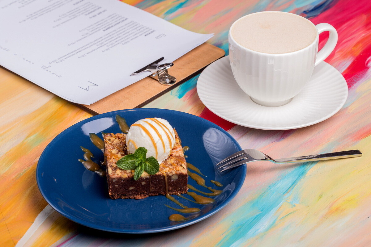 Брауни и карамель для десерта приготовлены по домашнему рецепту.