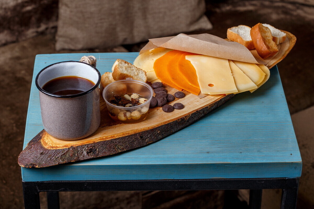 Нейтральный «Мальбек», сладкий «Радомер» и редкий «Трюфель с красным песто», вареный фермерский мед с орехами, темный бельгийский шоколад в дропсах и финские сухари korppu.